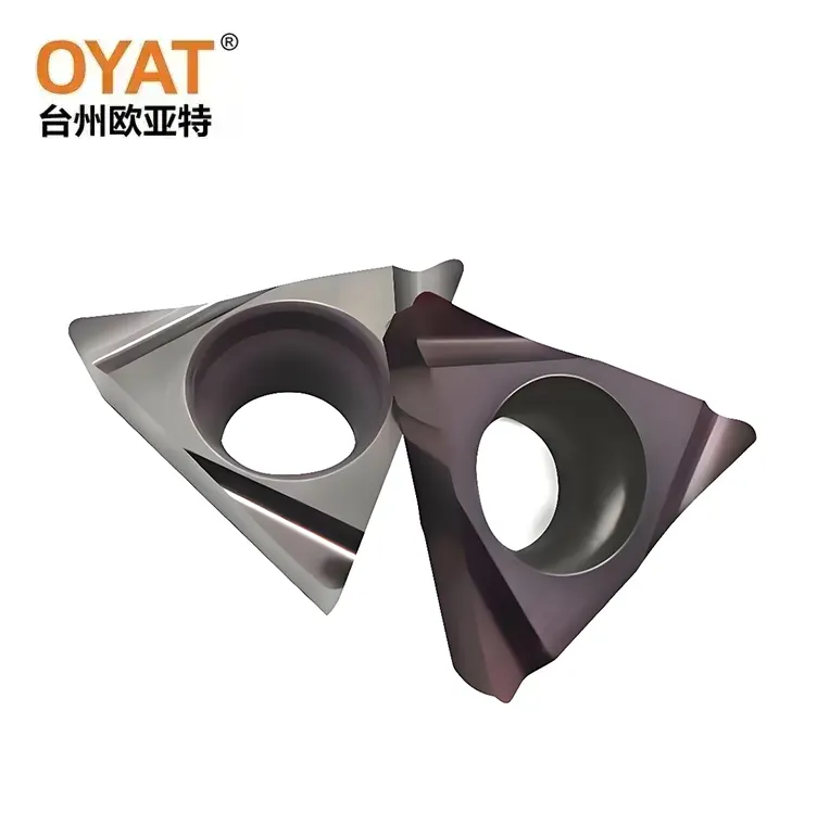 OYT TPGH080202L-svänginsatsen är tillverkad av högpresterande keramiska material såsom aluminiumoxid och kiselnitrid, bildad genom en sintringsprocess högtemperatur vid 1800-2000 ℃. Den har en Rockwell-hårdhet hos HRA90-95, betydligt högre än för vanliga hårda legeringsinsatser. Detta säkerställer långsiktig skärpa under skärning, kraftigt reducerar slitage och effektivt förlänger verktygslivslängden. Dessutom förhindrar den utmärkta kemiska stabiliteten hos keramiska material vidhäftning med metallarbetsstycken vid höga temperaturer, vilket förbättrar kontinuiteten och stabiliteten hos bearbetningsprocessen med cirka 10%.